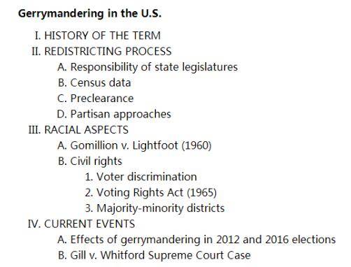 留学生要如何列独立写作Outline呢?outline通常是用一种清楚地表明主要观点和支持点的结构来创建的。下面的例子中,主要观点被编号,而支持观点被缩进一级并用字母标记。